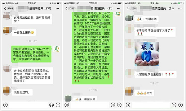 據(jù)介紹,心理服務(wù)小組根據(jù)不同服務(wù)對(duì)象,靈活提供多樣化的可及性心理服務(wù),包括家庭團(tuán)體心理服務(wù)、一對(duì)一個(gè)案咨詢、線上課堂、線上答疑等,具體服務(wù)內(nèi)容有:為確診冠狀病毒感染的病人及家屬提供線上一對(duì)一心理咨詢及家庭團(tuán)體心理服務(wù);關(guān)注社區(qū)一線的工作人員,為“三位一體”工作群、網(wǎng)格員工作群、醫(yī)護(hù)人員工作群、黨群干部工作群等一線工作人員提供“安心防疫心理手冊(cè)”線上課堂,視頻講解“安心”防疫工作;為工作強(qiáng)度大、情緒壓力大的一線人員開(kāi)展線上減壓團(tuán)體活動(dòng)及個(gè)體咨詢服務(wù);在專業(yè)的精神衛(wèi)生專家的指導(dǎo)下,聯(lián)合各社區(qū)的精訪社工,為社區(qū)有精神疾病的病人及家屬提供線上心理復(fù)康指導(dǎo)及心理咨詢服務(wù);開(kāi)通三條心理服務(wù)熱線,為居家隔離的人群提供線上電話咨詢服務(wù)及微信群線上答疑及文字咨詢活動(dòng)。