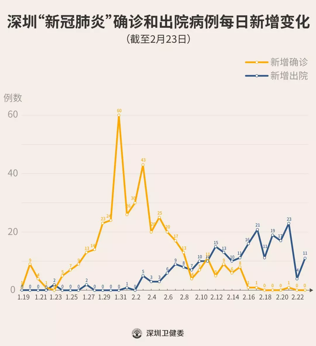 截至2月23日24時(shí),深圳累計(jì)報(bào)告“新冠肺炎”確診病例417例。2月23日當(dāng)天全市無(wú)新增確診病例。 ▲新增出院病例已超過新增確診病例 累計(jì)報(bào)告確診病例中,男性197例、女性220例。 按照病例管理地區(qū)劃分,南山區(qū)87例、福田區(qū)81例、龍崗區(qū)71例、寶安區(qū)62例、龍華區(qū)34例、羅湖區(qū)32例、光明區(qū)11例、坪山區(qū)7例、鹽田區(qū)6例、大鵬新區(qū)2例、其他(指由機(jī)場(chǎng)、車站、碼頭、關(guān)口、路卡等直接送往定點(diǎn)醫(yī)院的)24例。 目前,重癥5例、危重癥8例,死亡3例,累計(jì)出院237例。 177例確診病例均在深圳市第三人民醫(yī)院隔離治療。 159例密切接觸者正在接受醫(yī)學(xué)觀察。 資料來源:深圳市疾控中心、深圳市衛(wèi)健委、廣東省衛(wèi)健委