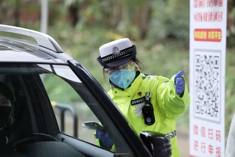 龍華交警在各卡點(diǎn)開展檢疫工作。