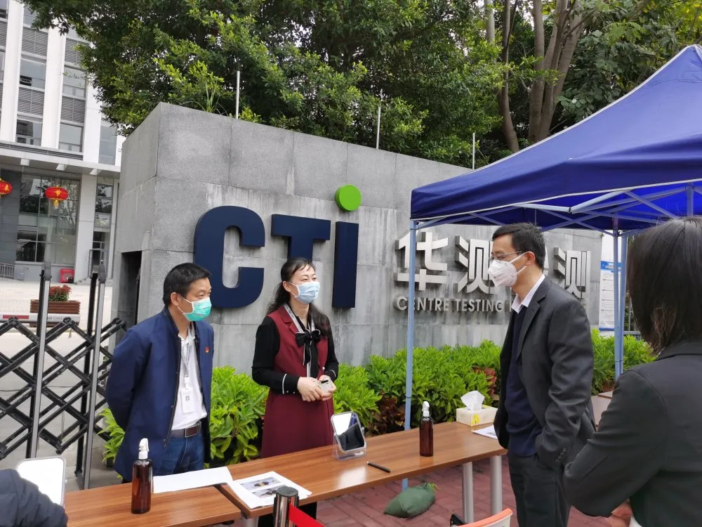 隨后,集團社康管理中心負責(zé)人和興東社康醫(yī)務(wù)人員到社區(qū)內(nèi)的重點企業(yè)——華測檢測認(rèn)證集團股份有限公司,開展復(fù)工復(fù)產(chǎn)防疫工作,指導(dǎo)管理人員學(xué)習(xí)如何正確戴口罩、洗手、測體溫,口罩回收注意事項、如何避免登記人員信息時感染等等。