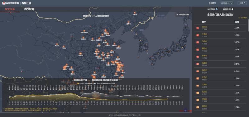 從百度遷徙地圖看到,2月21日起,深圳已連續(xù)4天居全國熱門遷入地榜首,同時,遷入規(guī)模指數(shù)也逐漸接近去年農(nóng)歷同期水平。