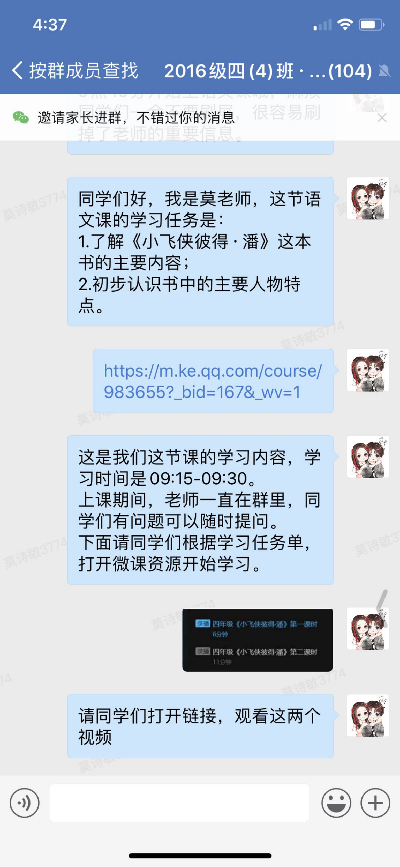 上課前,莫詩敏會在班級群里發(fā)學習任務單。