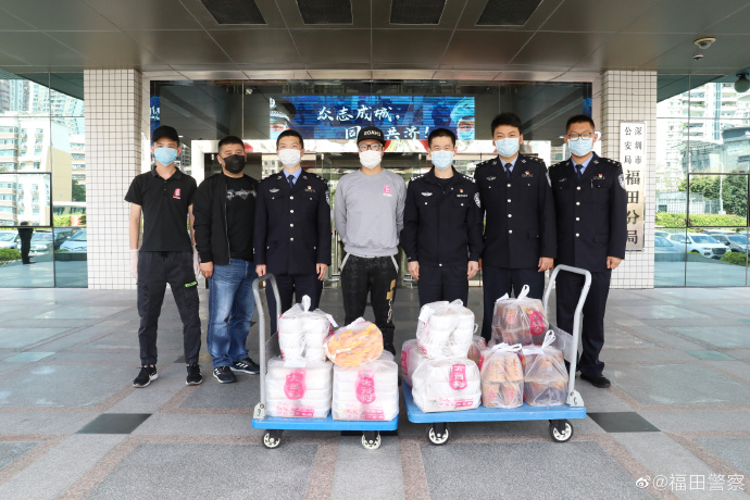 2月26日上午,一愛心餐飲店的工作人員正在準(zhǔn)備一批特別的午餐。11時許,該愛心餐飲店的代表帶著熱騰騰的餐食和飲品來到了深圳市公安局福田分局。該愛心餐飲店代表說,“疫情期間,奮戰(zhàn)在一線的民警為這座城市做了很多貢獻,經(jīng)常顧不上吃飯,我們希望能用我們的方式讓一線的執(zhí)勤民警知道,他們是被這個社會尊重的,加油!”福田分局指揮處副處長陳順勛對該企業(yè)的關(guān)心和支持表示感謝。福田警方將攜手社會各界的每一份力量,打贏這場疫情防疫戰(zhàn)。