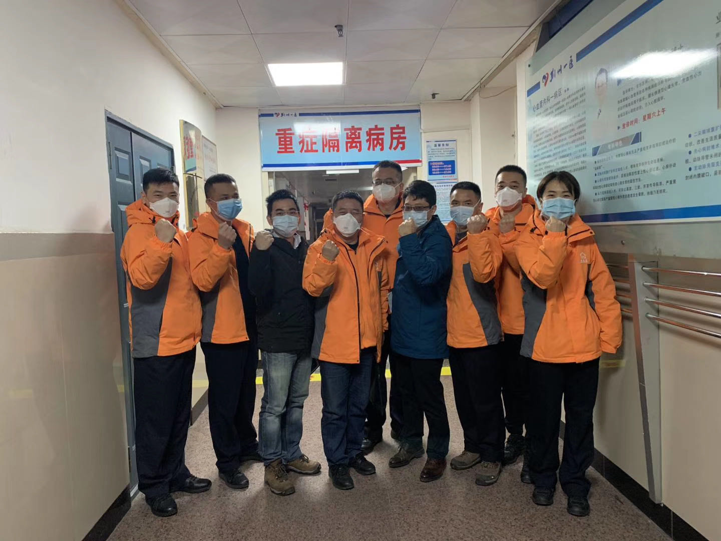 醫(yī)生團(tuán)隊(duì)共有7個人,我也將他們送到重癥隔離病區(qū)門口。我不能進(jìn)去,就和大家一起合了個影,這是我這一輩子都不能忘記的一次合影,我們每個人豎拳的手勢都那么有力,每個人的眼神都那么堅(jiān)定!連最瘦弱的女醫(yī)生單雪也看起來充滿力量。