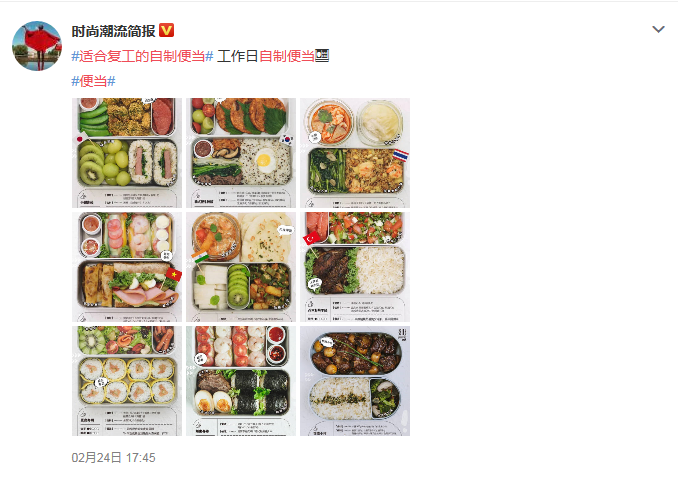 于是,網(wǎng)絡(luò)上誕生了一批自制蛋糕麻花冰淇淋,及便當(dāng)?shù)牟┲?/p>