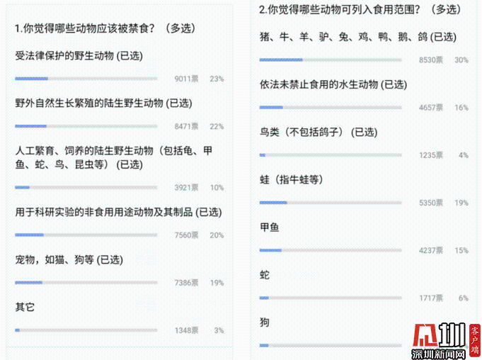 2月26日,深圳新聞網(wǎng)微信公眾號發(fā)布正在征求意見的《條例》后,當天傍晚有超過9000名網(wǎng)友參與投票,熱情高漲的網(wǎng)友還留言戲稱廣東菜譜“水魚燜雞”或許從此退出,也有人猜測以田雞(牛蛙)為主打的餐館要“涼涼”了。(相關(guān)報道:深圳最嚴禁食野生動物條例征求意見近萬網(wǎng)友投票:甲魚牛蛙該不該被禁?