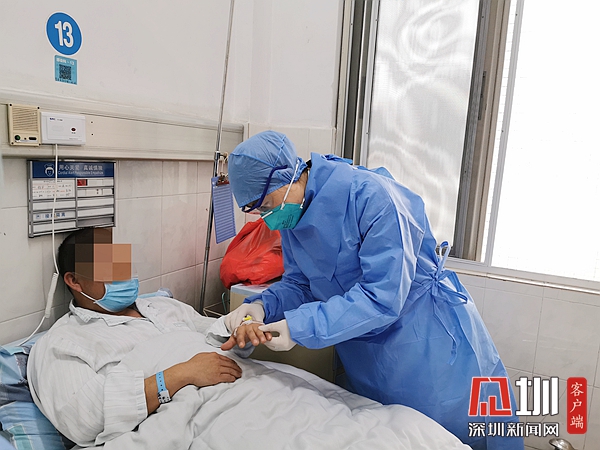 剛剛看到檢測結(jié)果,鄺醫(yī)生便迅速穿上防護服,進(jìn)入隔離區(qū)跟患者進(jìn)行了面對面的溝通交流。那位患者得知自己檢測的結(jié)果后略顯失落,嘆了一口氣,似乎是擔(dān)心焦慮等待了多日,心里的石頭終于落了地。他說:“我一定聽您的話,好好吃藥,好好治療,爭取活著回來?!?/p>