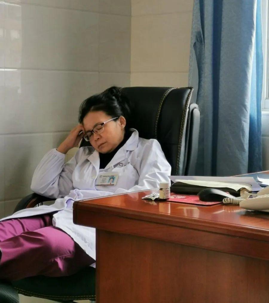 龍華區(qū)人民醫(yī)院感染性疾病科主任姜春梅負責(zé)發(fā)熱門診,是此次防控“戰(zhàn)役”龍醫(yī)的前線指揮官,今年49歲的她曾參加2003年非典、2009年甲流的防控工作。疫情期間,身體抱恙的她一直在打針吃藥,但仍在盡心安排防疫工作,工作間隙吃完藥的她,就這么靠在椅子上瞇一會。