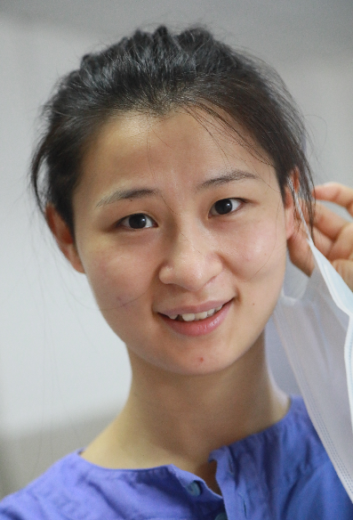 黃青青性格開朗,適應(yīng)能力強,她平時不愛吃的胡蘿卜、包菜等食物,但到了一線再也不挑食了。身材瘦弱的她在忙碌十多天后有些消瘦,但她總是打趣道:“別看我瘦,力量可大著呢!”協(xié)助病人翻身,耐心為病人喂飯,只要病人需要的,她都會盡自己的全力做好,病區(qū)的病人也為她豎起大拇指。