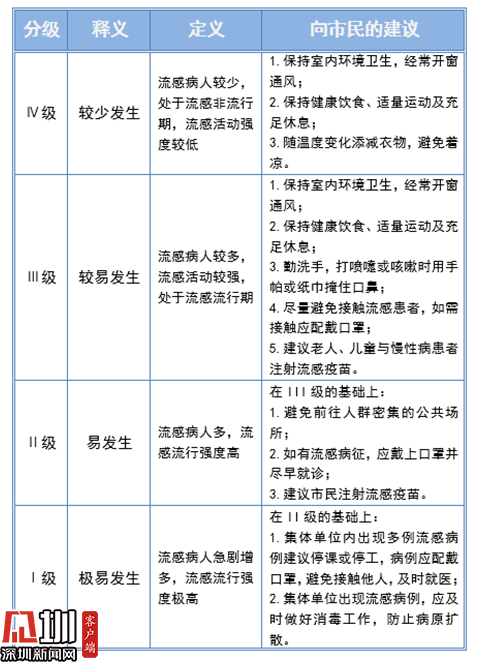 根據(jù)深圳市疾控中心發(fā)布的流感指數(shù)應(yīng)對指引,市民應(yīng)保持室內(nèi)環(huán)境衛(wèi)生,經(jīng)常開窗通風;保持健康飲食、適量運動及充足休息;勤洗手,打噴嚏或咳嗽時用手帕或紙巾掩住口鼻;盡量避免接觸流感患者,如需接觸應(yīng)配戴口罩;建議老人、兒童與慢性病患者注射流感疫苗。