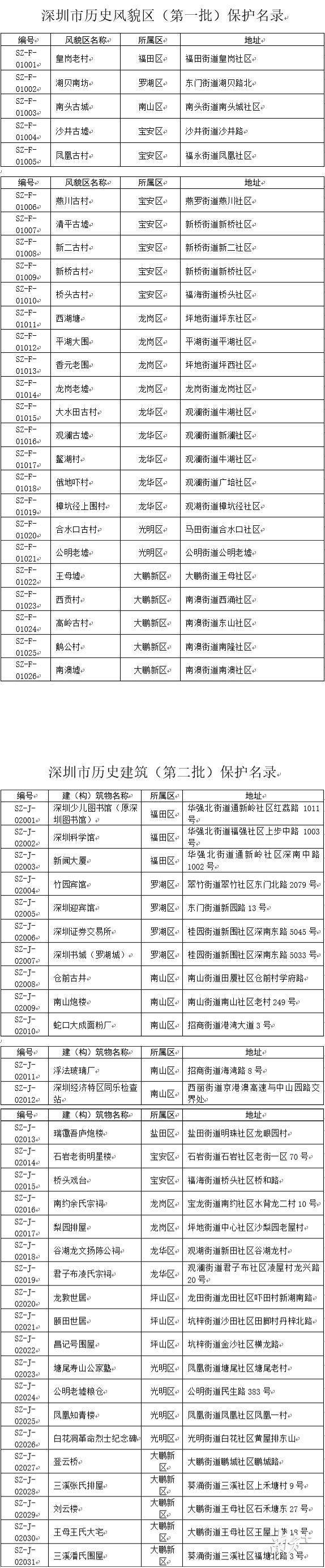 南方網(wǎng)2020年3月13日訊 記者從最新一期政府公報獲悉,3月2日,深圳市政府發(fā)文公布深圳市歷史風(fēng)貌區(qū)(第一批)和歷史建筑(第二批)保護(hù)名錄。寶安區(qū)沙井古墟、福田區(qū)皇崗老村等26處古墟及古村被列為第一批歷史風(fēng)貌區(qū),南山區(qū)南山炮樓、寶安區(qū)石巖老街明星樓等31處建筑被列為第二批歷史建筑。