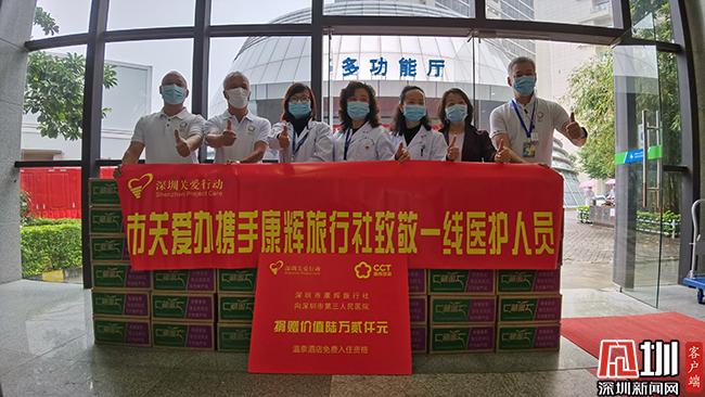 為表達(dá)對(duì)醫(yī)護(hù)人員的感謝,深圳市康輝旅行社捐贈(zèng)價(jià)值6.2萬(wàn)元的廣東省內(nèi)溫泉酒店免費(fèi)入住券40張。每張入住券可在廣東省內(nèi)指定酒店入住雙床房或大床房?!耙咔槠陂g,我們康輝人一直都在為抗擊疫情獻(xiàn)綿薄之力。”深圳市康輝旅行社有限公司董事總經(jīng)理滿炎權(quán)告訴記者,在疫情前期,全國(guó)各地醫(yī)用物資告急。各地康輝分公司迅速自我組織、自籌資金,聯(lián)系在國(guó)外的康輝旅行社的領(lǐng)隊(duì)及導(dǎo)游購(gòu)買大量醫(yī)療物資回國(guó)。“現(xiàn)在國(guó)內(nèi)醫(yī)療物資暫時(shí)不缺了,我們深圳康輝送給三院的醫(yī)護(hù)人員溫泉酒店入住券,希望他們?cè)谝咔榻Y(jié)束后,能好好休息?!?/p>