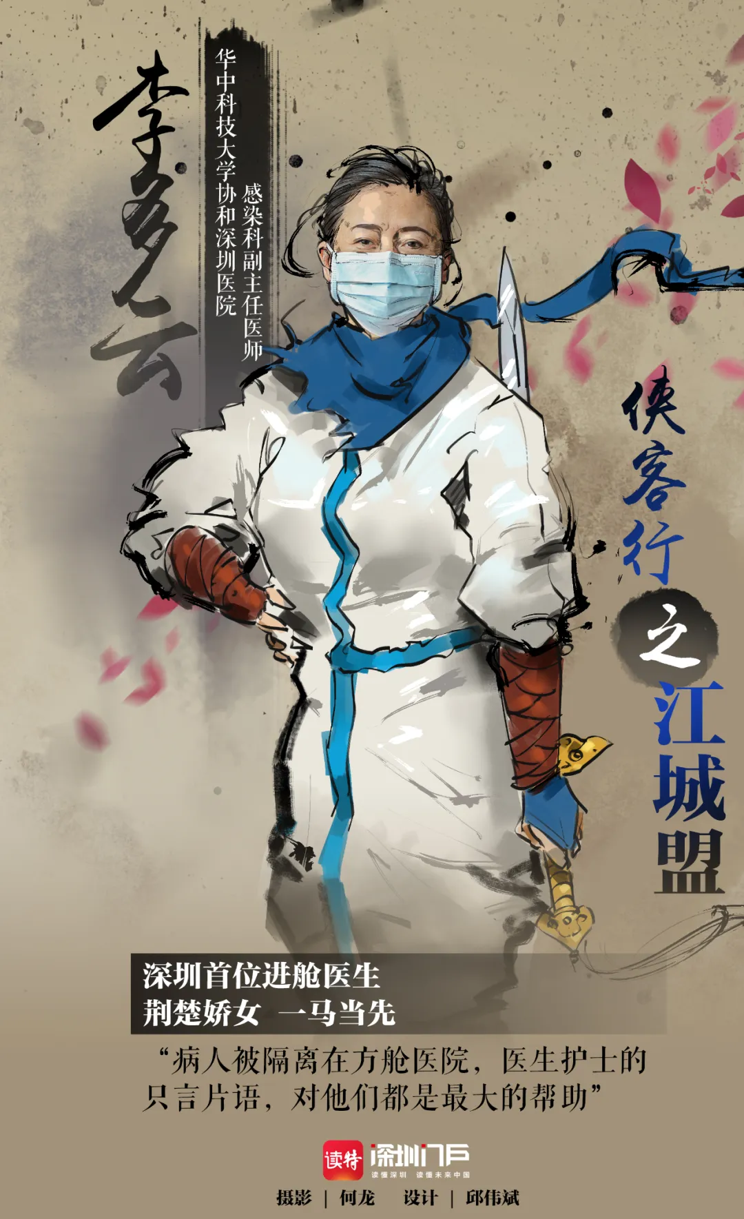 他們13位俠勇之士結(jié)盟成隊(duì),來自深圳5家醫(yī)院(深圳市第二人民醫(yī)院和北大深圳醫(yī)院、市人民醫(yī)院、市中醫(yī)院、華中科技大學(xué)協(xié)和深圳醫(yī)院),2月9日首批出發(fā),征戰(zhàn)江城抗疫前線。