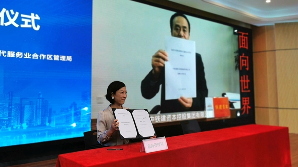 與以往不同,本次簽約儀式采用了現(xiàn)場(chǎng)簽約與視頻連線(xiàn)“云簽約”結(jié)合的特殊方式。前海管理局與中鐵建資本控股集團(tuán)有限公司,與國(guó)研科工、彩虹魚(yú),與北京大學(xué)匯豐商學(xué)院、劍橋大學(xué)嘉治商學(xué)院的合作采用了“云簽約”。