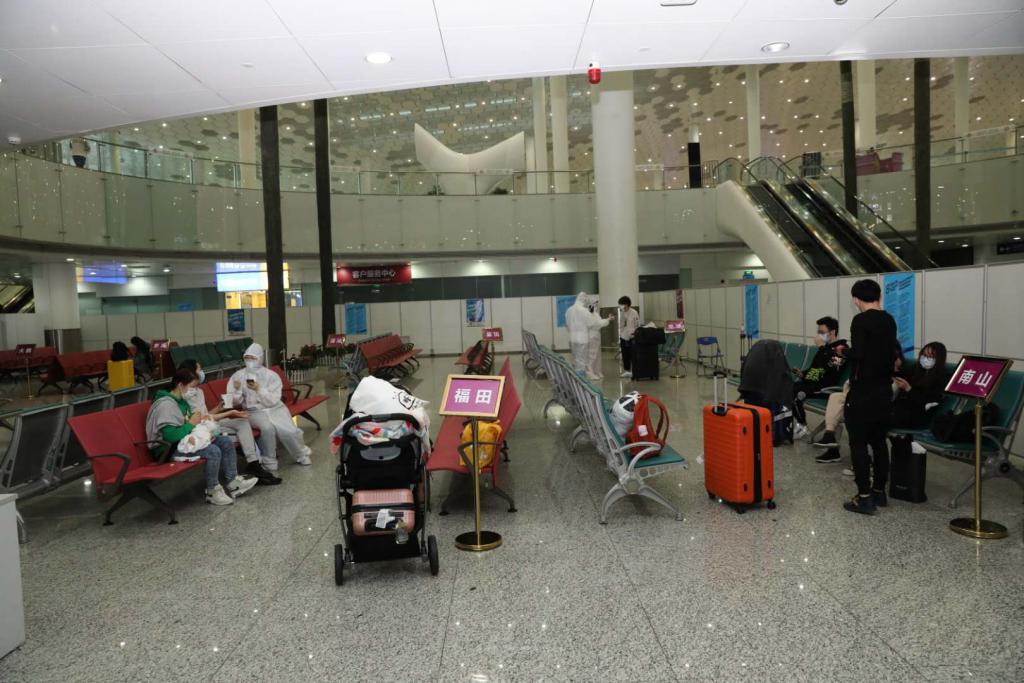 記者在現(xiàn)場看到,分撥轉(zhuǎn)運(yùn)點(diǎn)劃分為藍(lán)色、橙色、紫色區(qū)域,懸掛相應(yīng)底色指示牌和張貼引導(dǎo)標(biāo)識,工作人員逐一為旅客張貼代表不同目的地的藍(lán)、橙、紫顏色胸牌,實(shí)行"三色區(qū)域、人區(qū)同色"的"顏色管理"。