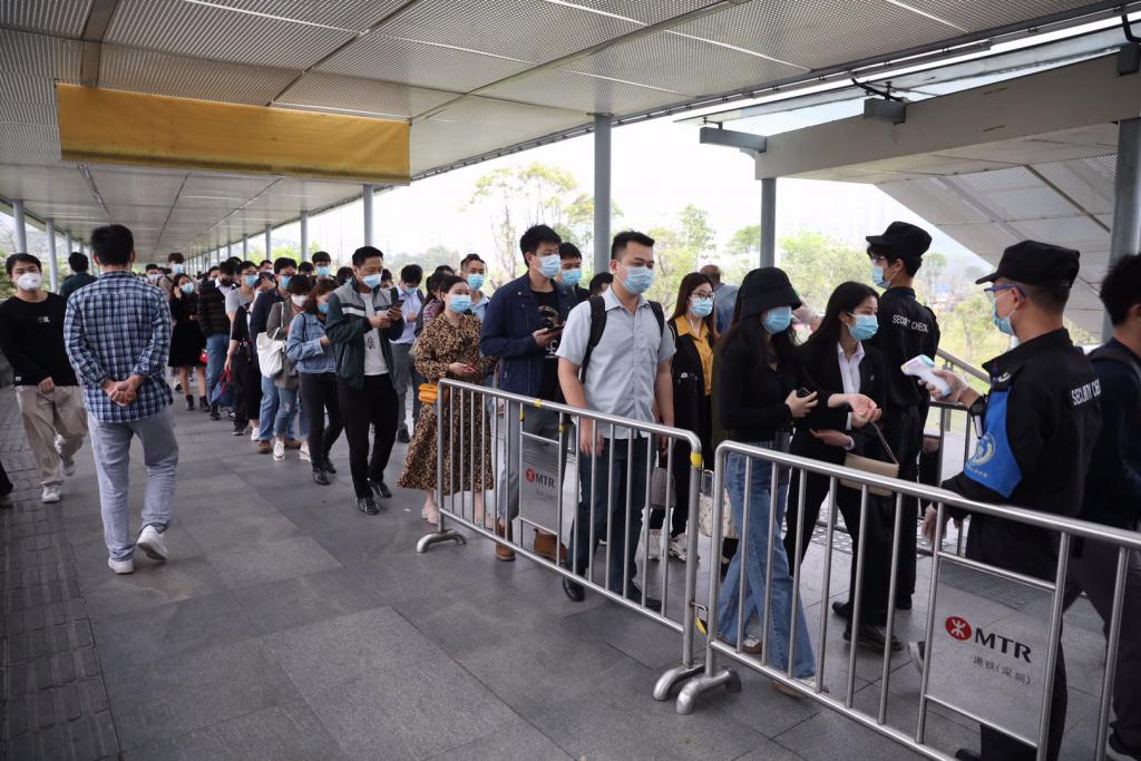 ▲民樂地鐵站入口處排起了長隊。