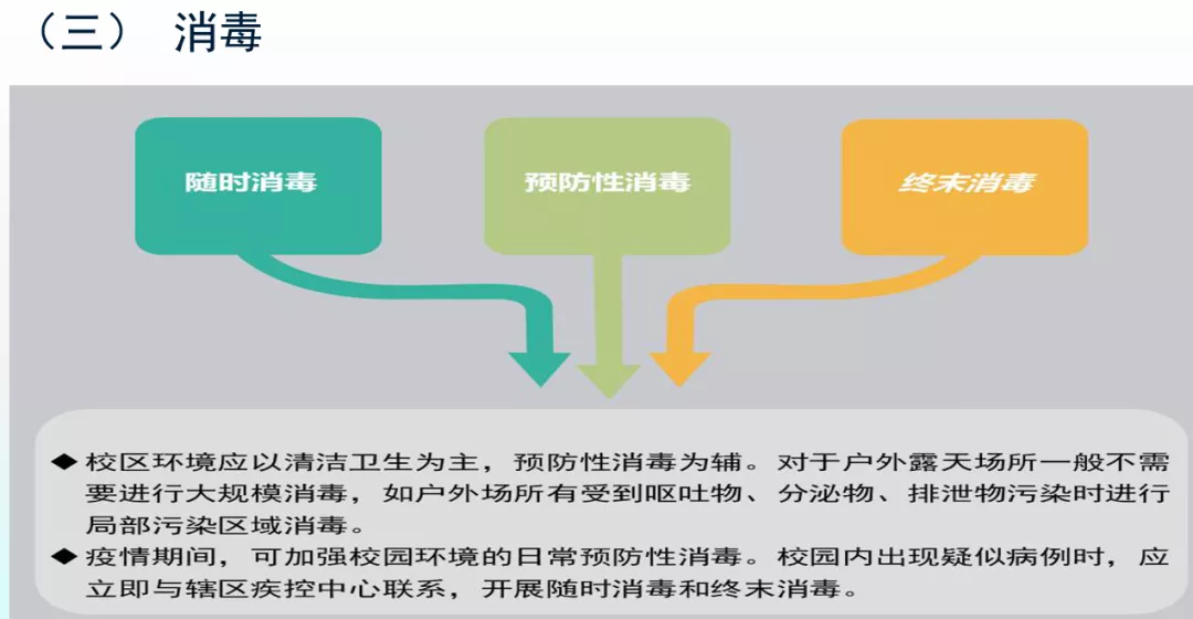 二是實施校園封閉式管理。做好校園衛(wèi)生整治、“四害”消殺和重點場所的預(yù)防性消毒。設(shè)置相對獨立的健康觀察區(qū)(室)、設(shè)置洗手設(shè)施、儲備足夠的防護用品等措施。