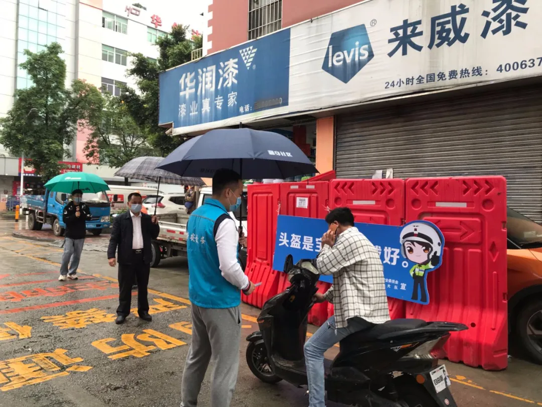 嚴(yán)查不戴頭盔違法,曝光所在社區(qū)。深圳交警聯(lián)合各轄區(qū)街道交安辦在社區(qū)內(nèi)開展頭盔佩戴抽查整治行動,提高電動自行車駕乘人員的交通安全意識。對頭盔佩戴率較低的社區(qū),進(jìn)行通報曝光。