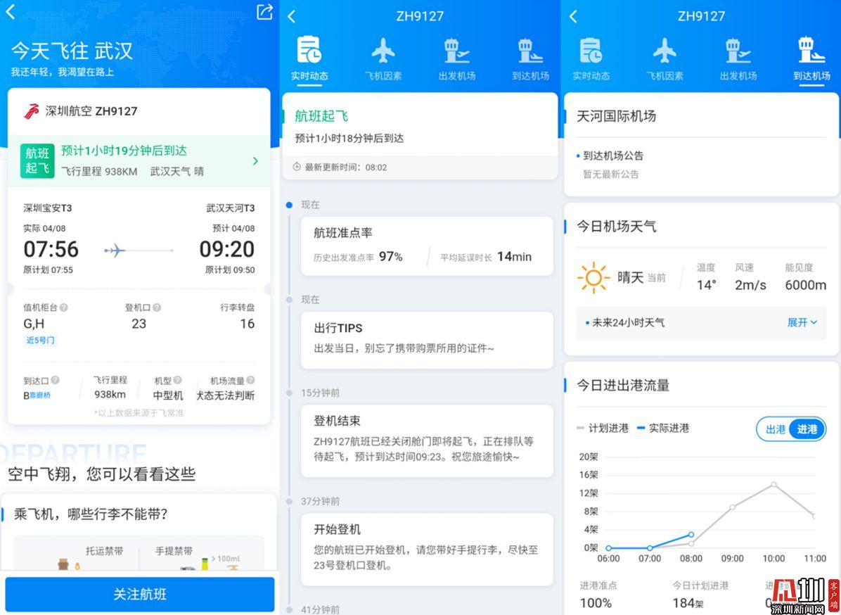 記者從南方航空深圳分公司了解到,4月8日起,南航將恢復CZ6637、CZ3358、CZ3356三個深圳飛武漢航班,起飛時間分別為09:30、11:10、19:25,時間點覆蓋了早中晚,方便旅客做出行選擇。4月11日后,南航每天將有五個深圳往返武漢航班助力復工復產。