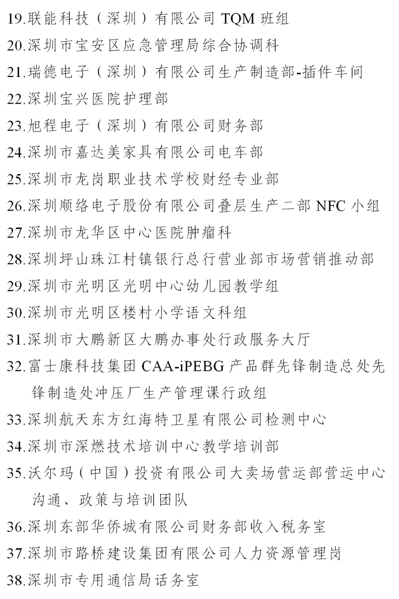 一、深圳市五一巾幗標兵崗名單