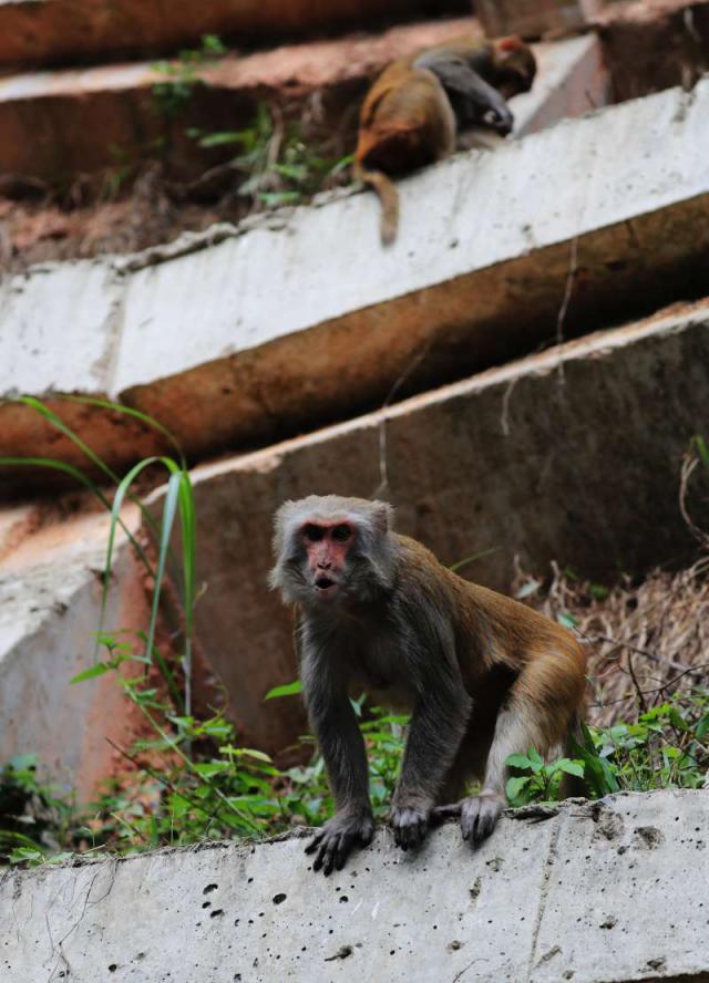 ▲猴子見到有游客,正準(zhǔn)備從山上下來。