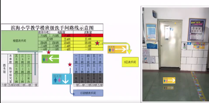 學(xué)校在每個樓層,都有彩色的貼條,“不串班不串層,請在屬于自己的色彩區(qū)域內(nèi)活動哦!”