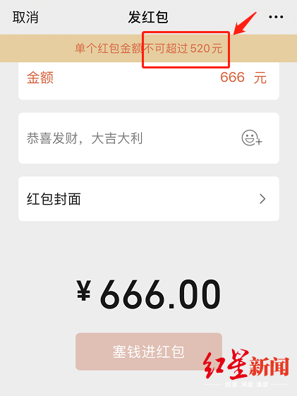 見圳客戶端·深圳新聞網(wǎng)2020年5月20日訊 今天是5月20日,“520”諧音“我愛你”,被網(wǎng)友們賦予了“節(jié)日”屬性。騰訊微信團(tuán)隊(duì)宣布,5月20日00:00-23:59,微信普通紅包的單個(gè)金額上限由200元上調(diào)到520元。此前微信普通紅包單個(gè)限額200元,如果需要發(fā)送超過200元的紅包給好友,則需要分次發(fā)送。