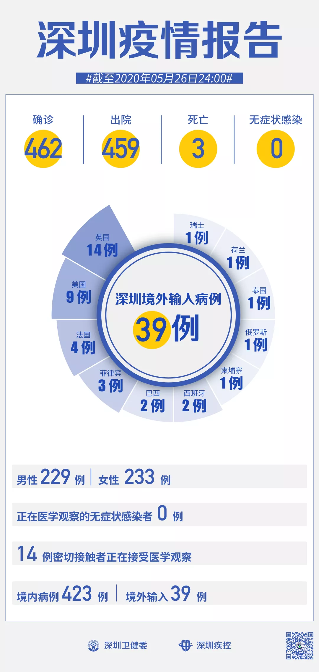截至5月26日24時,深圳累計報告新冠肺炎病例462例。