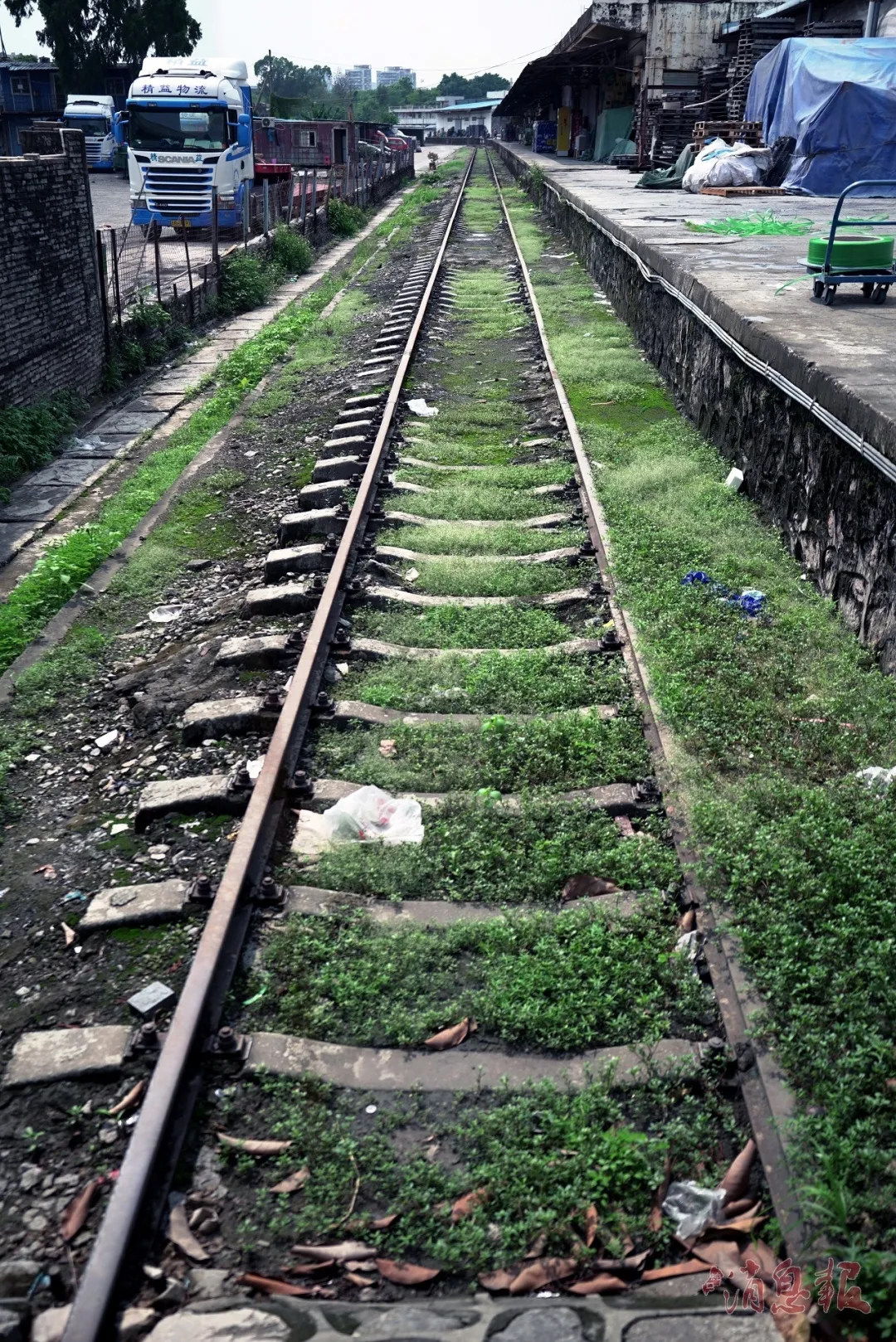 ▲一條貨運(yùn)專(zhuān)線逐漸被綠植覆蓋,好久沒(méi)有列車(chē)駛過(guò)。