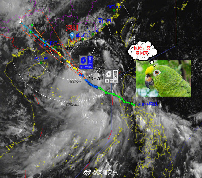【臺(tái)風(fēng)“鸚鵡”將從深圳西南方150-250公里的海面上掠過(guò)】