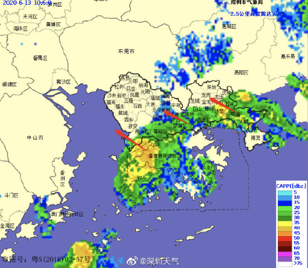 降雨云團(tuán)將自南向北逐漸影響深圳市,外出的小伙伴記得帶傘!