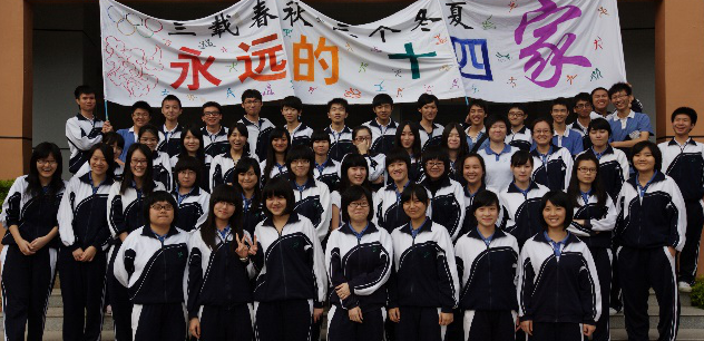 有位同學(xué)高考后在微博上寫道:“雖然高考結(jié)束了,但我的心還在學(xué)校,我很懷念清晨拿著我喜歡的‘十四家’的班本教材跑到樓頂上背書的日子……”那屆高考,他們班本科上線率名列年級平行班第一名。