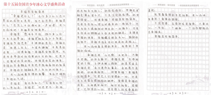 據(jù)活動(dòng)組委會(huì)相關(guān)負(fù)責(zé)人介紹,“第十五屆全國青少年冰心文學(xué)盛典”以“2020文學(xué)之路,向上的力量”為主題,全程公益免費(fèi),設(shè)置了小學(xué)低年級(jí)組(1-3年級(jí) )、小學(xué)高年級(jí)組(4-6年級(jí) )、初中組、高中組、大學(xué)組、教師組、文學(xué)愛好者組等多個(gè)組別。值得注意的是,所有報(bào)名選手必須使用本次活動(dòng)專用稿紙進(jìn)行書寫創(chuàng)作。組委會(huì)將會(huì)根據(jù)選手報(bào)名提交的郵寄地址免費(fèi)郵寄活動(dòng)專用稿紙,每人僅限領(lǐng)取5張。選手完成手寫作品以后,將作品掃描或拍照發(fā)送到全國青少年冰心文學(xué)寫作指導(dǎo)中心深圳組委會(huì)指定郵箱szbxwx@126.com(冰心文學(xué)深圳)或gdbxwx@126.com(冰心文學(xué)廣東)。