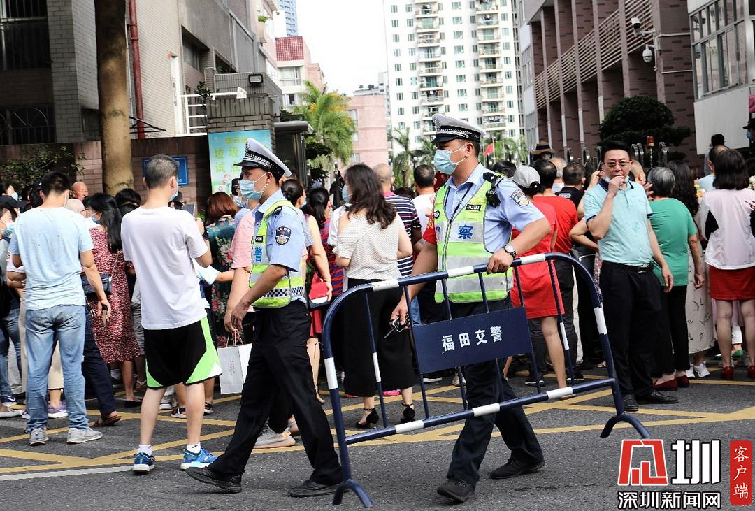 深圳高級中學(xué)考點(diǎn)外,福田交警加強(qiáng)周邊道路巡邏管控。