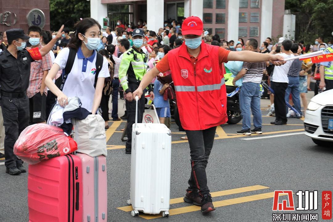 深圳高級中學(xué)考點(diǎn)外考生自信滿滿走出考場。