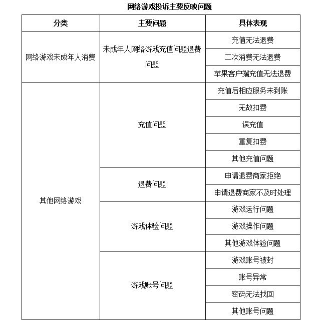 未成年人消費成網絡游戲投訴主要問題