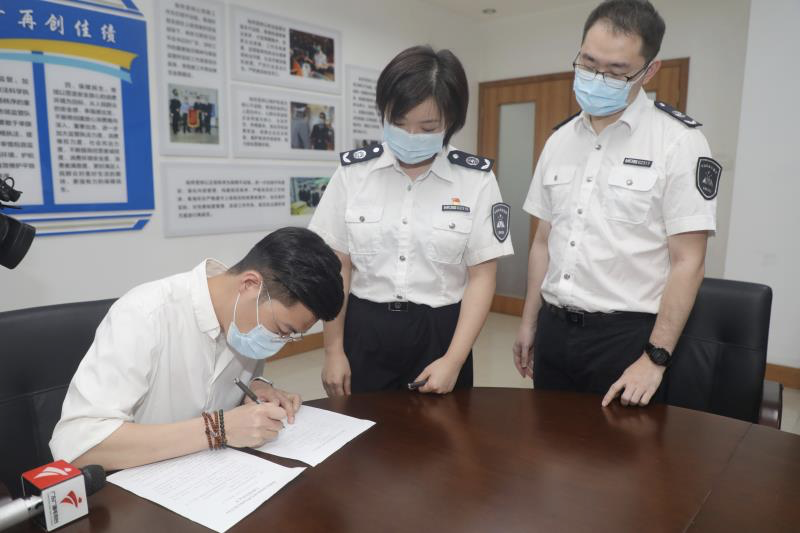 在深圳市市場監(jiān)督管理局南山分局粵海所,記者看到企業(yè)法人現(xiàn)場接受行政處罰決定書,對于違法行為,該負責人表示“已經進行整改”。