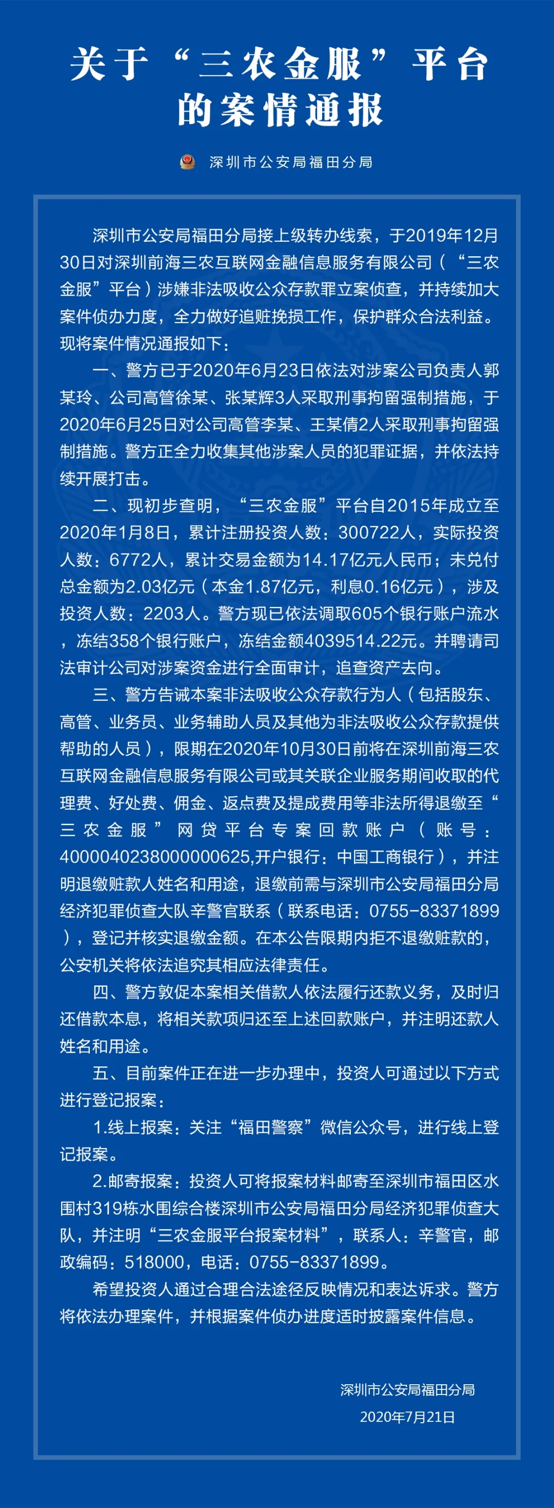 關(guān)于“三農(nóng)金服”平臺、“大麥理財”平臺的案情通報