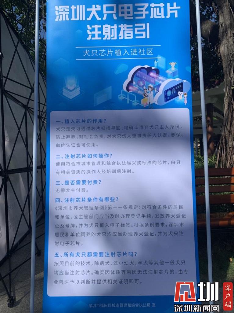 見圳客戶端·深圳新聞網(wǎng)2020年7月26日訊(記者 戰(zhàn)旗)7月26日上午,由深圳市城市管理和綜合執(zhí)法局主辦,福田區(qū)城管和綜合執(zhí)法局承辦的全市首場“文明養(yǎng)犬·芯連心”犬只芯片植入進社區(qū)活動在福田區(qū)景蜜社區(qū)公園開展。記者現(xiàn)場獲悉,2020年年底前,深圳將實現(xiàn)犬只芯片管理全覆蓋,目前,全市各區(qū)都在逐步推進犬只芯片植入工作,福田區(qū)、龍崗區(qū)、龍華區(qū)、羅湖區(qū)、大鵬新區(qū)已與100家寵物醫(yī)院正式簽訂了《犬只芯片植入委托服務(wù)》。