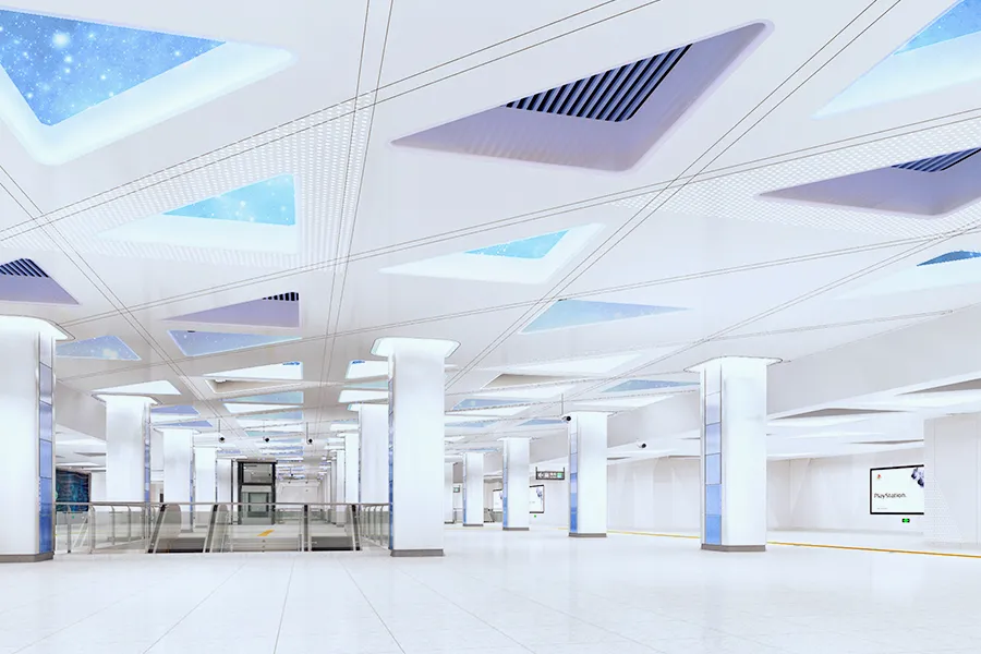 科學(xué)館站位于上步路與深南大道交叉口至濱河大道段,呈南北向布置。與1號(hào)線通道換乘,車站為地下三層單柱雙跨鋼筋混凝土框架結(jié)構(gòu),共設(shè)出入口6個(gè):E、F,物業(yè)口1、2、3、4。此外,與1號(hào)線換乘通道。