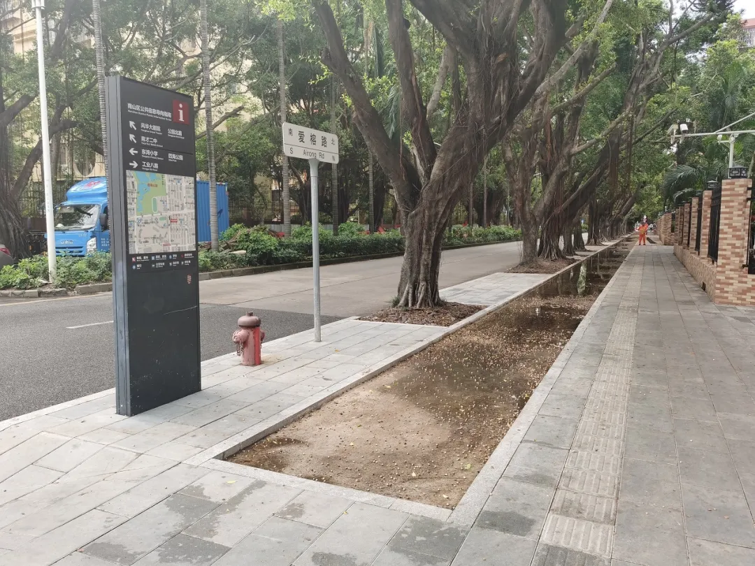 據(jù)深圳市交通運(yùn)輸局南山管理局相關(guān)負(fù)責(zé)人介紹,目前愛榕路(荔園路—東濱路段)兩側(cè)人行道正在進(jìn)行相關(guān)提升改造工程。