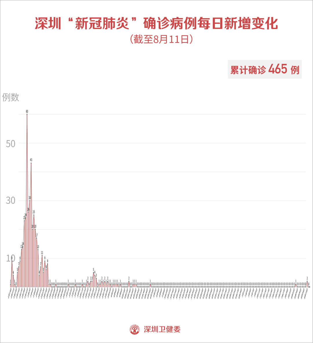 截至8月11日24時,深圳市累計(jì)報(bào)告新冠肺炎確診病例465例。目前在院3例。