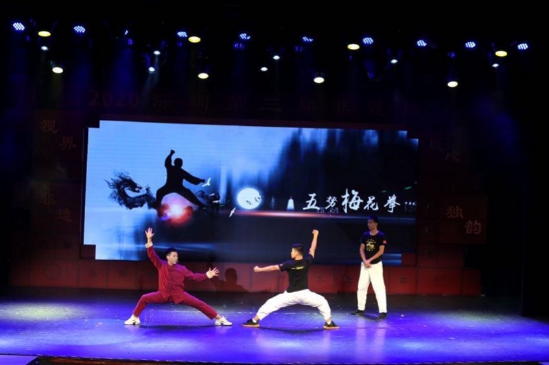 開幕式伊始,羅湖區(qū)第六批非物質(zhì)文化遺產(chǎn)代表性項目現(xiàn)場授牌。自此,《五勢梅花拳》《鄭氏金銀細工制作技藝》《王氏面塑》《楊氏中國結(jié)》《聶氏麥稈畫》《盆景藝術(shù)》《萃華金銀制品(花絲鑲嵌與鏨刻)工藝》等7項傳統(tǒng)藝術(shù),成為羅湖區(qū)新一批非遺項目。