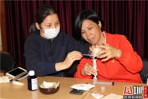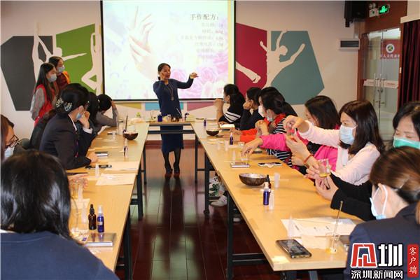 據(jù)了解,劉燦輝浸染芳香研究十幾年,有著豐富的芳療經(jīng)驗(yàn)。在課堂上,劉燦輝耐心地引導(dǎo)社區(qū)婦女在芳香中忘掉壓力和煩惱,體驗(yàn)愉快,開拓出精神力量。20位社區(qū)婦女還在老師的帶領(lǐng)下,動(dòng)手制作潤手霜。大家相互幫助,彼此配合,經(jīng)過調(diào)試、攪拌、加熱、瓶裝等過程,每位學(xué)員都擁有了一支專屬于自己的潤手霜。