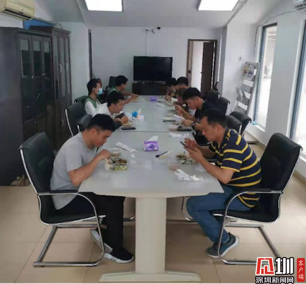 在e站就餐的快遞員。
