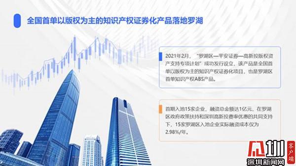 見圳客戶端·深圳新聞網(wǎng)4月23日訊(記者 郭含笑 通訊員 王瑛 鮑朗舒)今年2月,“羅湖區(qū)—平安證券—高新投版權(quán)資產(chǎn)支持專項(xiàng)計(jì)劃”在深圳證券交易所正式成立,發(fā)行規(guī)模1億元。4月23日上午,深圳羅湖“雙周發(fā)布”舉行版權(quán)證券化專場(chǎng),發(fā)布了羅湖區(qū)知識(shí)產(chǎn)權(quán)證券化扶持的最新政策。