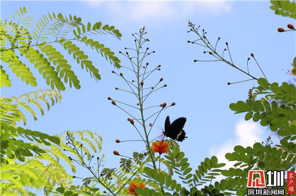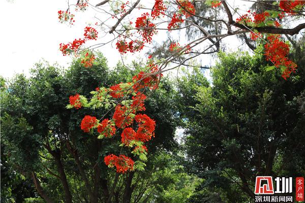 五月綻放全城的鳳凰花,映射著深圳這座城市的繁華與熱情,同時(shí)也給這座城市帶來勇敢熱烈的色彩。從鏡頭中可見,鳳凰花花團(tuán)緊簇,在藍(lán)天的襯托下,那一簇簇火紅的花海張揚(yáng)而又高調(diào)地綻放,為深圳“藍(lán)”染上了一抹紅。
