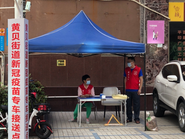 炎炎烈日,為貼心服務(wù)群眾,黃貝街道設(shè)立了接種新冠疫苗專車接送點(diǎn)。接送點(diǎn)的義工告訴記者,在戶外工作特別消耗水,一個(gè)上午就喝掉四五瓶飲用水,雖然準(zhǔn)備了防曬的雨棚,但路上的熱空氣卻躲不掉,一會(huì)兒下來(lái)也是大汗淋漓,不過(guò)能為群眾服務(wù),盡快建立全民免疫陣線,這份守候很值得。