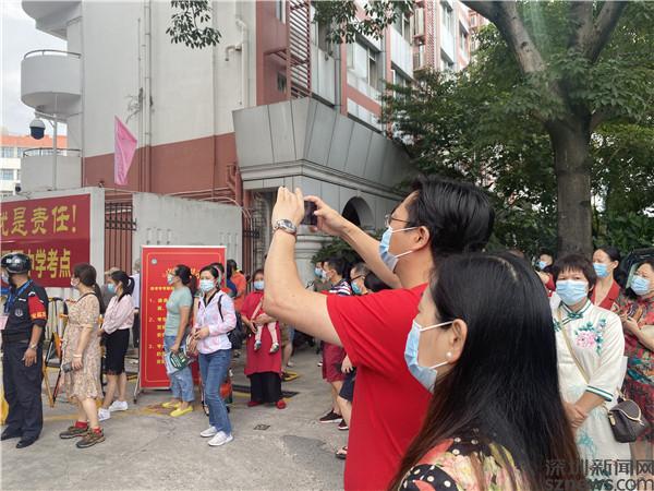 當(dāng)天上午7:50,記者來到羅湖區(qū)翠園中學(xué)和羅湖外語學(xué)校門口,只見考生們已陸續(xù)排隊(duì)領(lǐng)取準(zhǔn)考證,有序進(jìn)入考場。許多穿著“紅旗袍”戴著“紅口罩”的家長們在紛紛叮囑孩子們后,已在校門口等候。