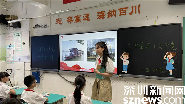 6月16日上午,記者走進(jìn)深圳市螺嶺外國(guó)語(yǔ)實(shí)驗(yàn)學(xué)校,教室里的老師正生動(dòng)地講述中國(guó)共產(chǎn)黨的光輝歷程,通過(guò)一張張珍貴的歷史圖片、一段段刻骨銘心的歷史故事,引領(lǐng)同學(xué)們共同追尋紅色記憶、感懷革命精神。